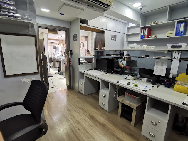 A small revision was made because the clients felt like they need all the salesmen need their own desk and limits apparent and they needed the display cases in the back wall smaller and more in quantity. Therefore, we decided change the design of the sales desks and display cases.